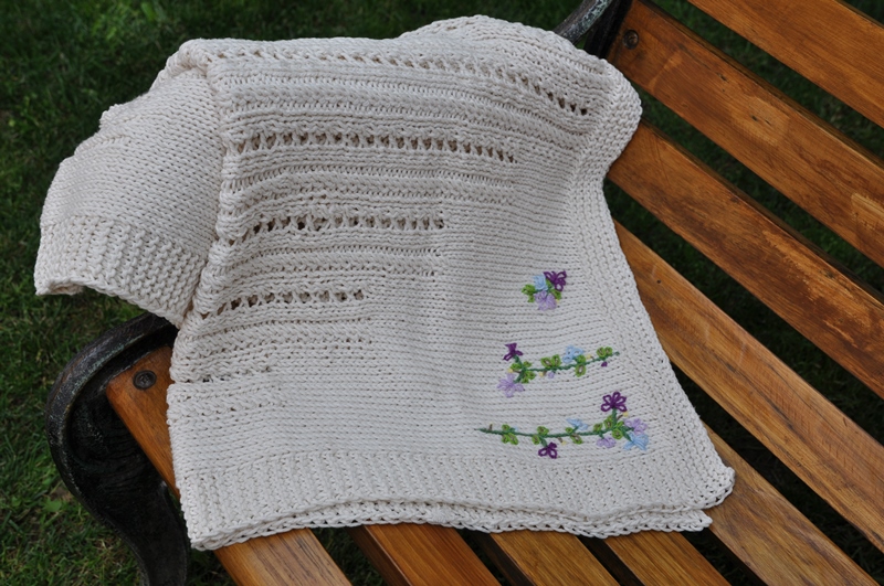 Deka je v hodným dárkem k narození miminka či ke křtu. K dece nabízíme rovněž ručně pletený overal ve stejné barvě a se stejnou ruční výšivkou.