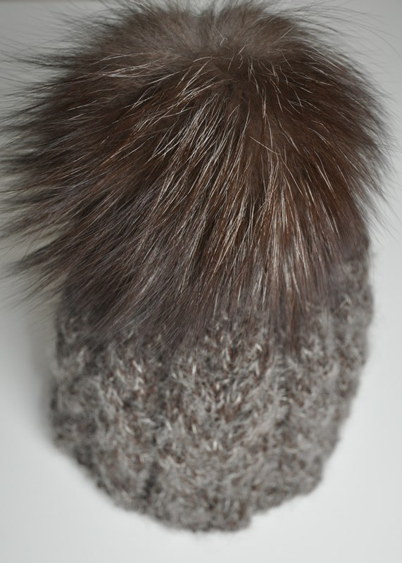 Trendy ručně pletená čepice s pravou liščí bambulí je vhodná pro malé i větší děti na zimu.
