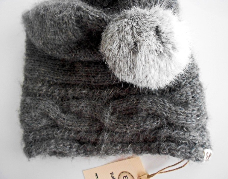 Trendy ručně pletená čepice s pravou králičí bambulí je vhodná pro malé i starší děti na zimu.